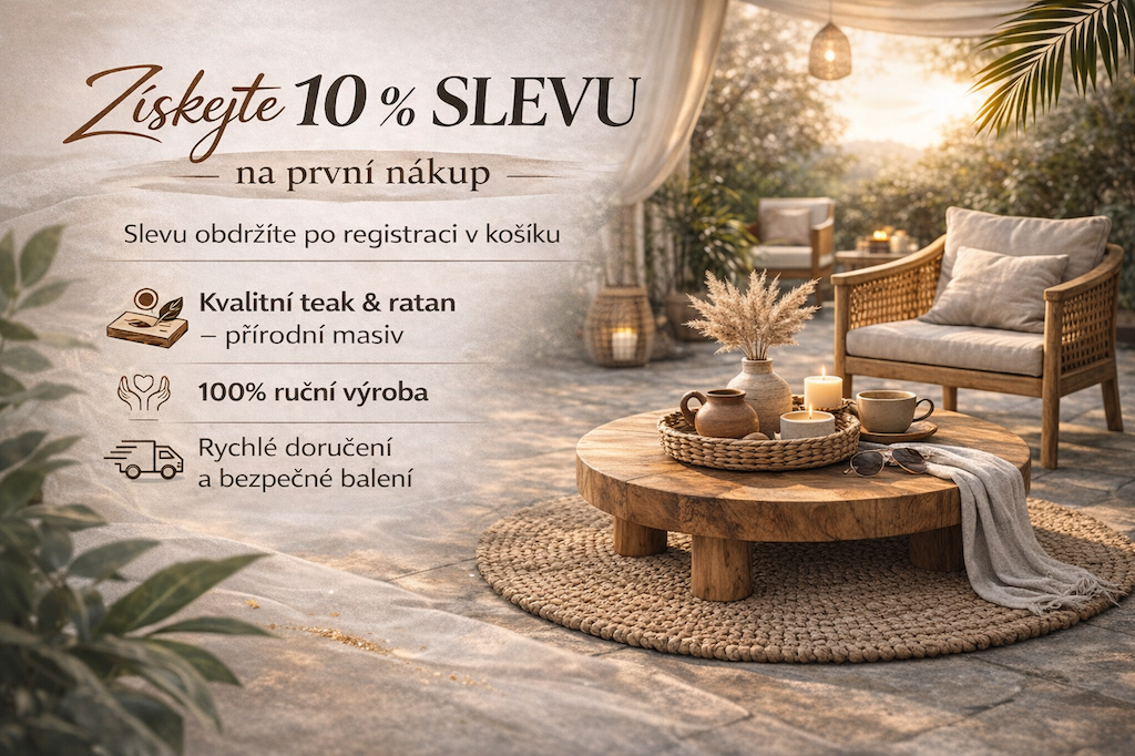 Naše kolekce je pečlivě vybírána s důrazem na detail a dlouhou životnost. Teakový nábytek vyniká odolností vůči času i každodennímu používání, zatímco ratanové kousky přinesou do vašeho interiéru lehkost a vzdušnost. Kombinací obou materiálů snadno vytvoříte harmonický prostor, který bude působit útulně i moderně zároveň. Pokud hledáte jedinečné prvky, které vyniknou, doporučujeme naše designové doplňky z teaku – od dekorací až po praktické detaily, které promění každý kout vašeho domova.