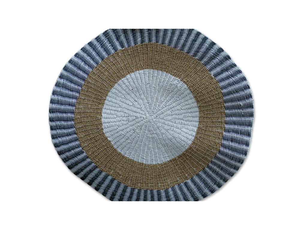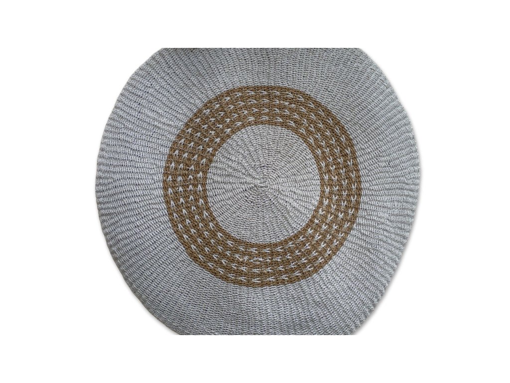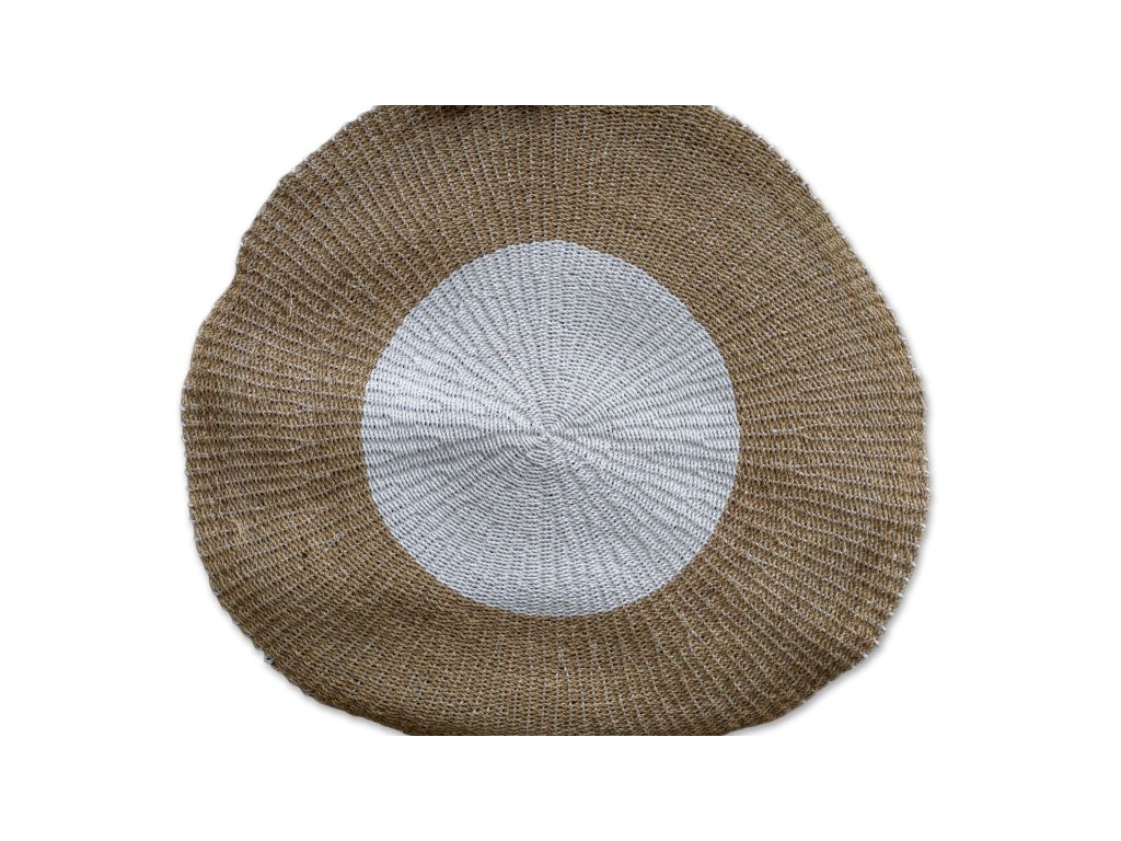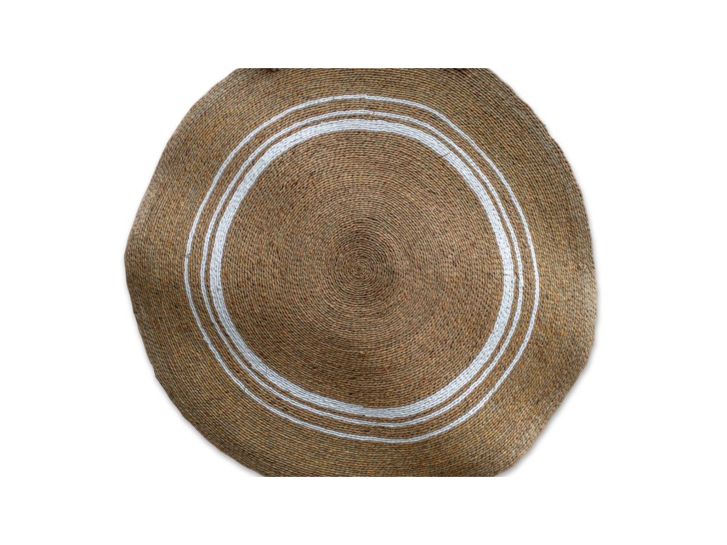 Tento okouzlující kulatý koberec je vyroben ručně z přírodních materiálů, které mu dodávají jedinečný a nadčasový vzhled. Kombinace bílé, přírodní hnědé a černobílé pruhované barvy vytváří zajímavý a zároveň univerzální design, který se hodí do různých typů interiérů – od moderního až po rustikální styl. Koberec je ideální do obývacího pokoje, ložnice, dětského pokoje nebo i na terasu či verandu, kde přinese přírodní teplo a útulnost.