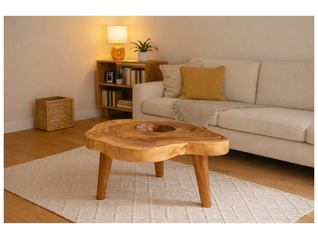 Teakový konferenční stolek s unikátním přírodním tvarem, který zaujme svým originálním designem i kvalitou zpracování. Masivní teakové dřevo je známé svou pevností, odolností a krásnou zlatavou barvou, která se časem ještě více zvýrazňuje. Tento stolek je nejen praktickým doplňkem do vašeho obývacího prostoru, ale také jedinečným uměleckým kouskem, který vnese do interiéru přírodní atmosféru a teplo dřeva.