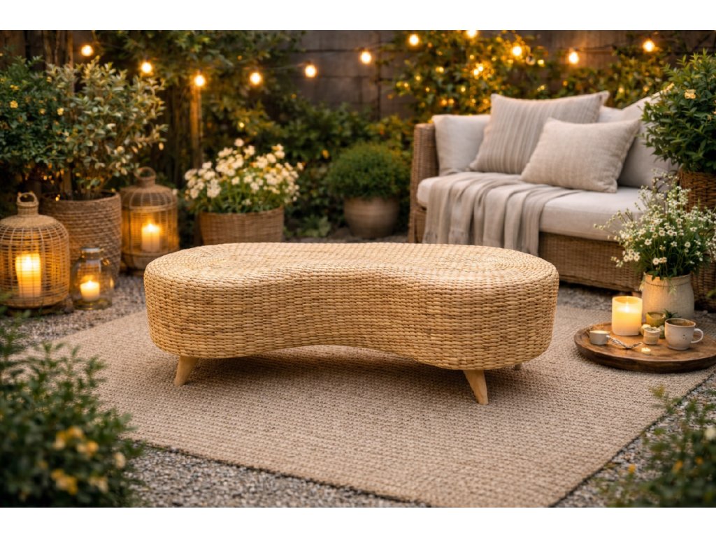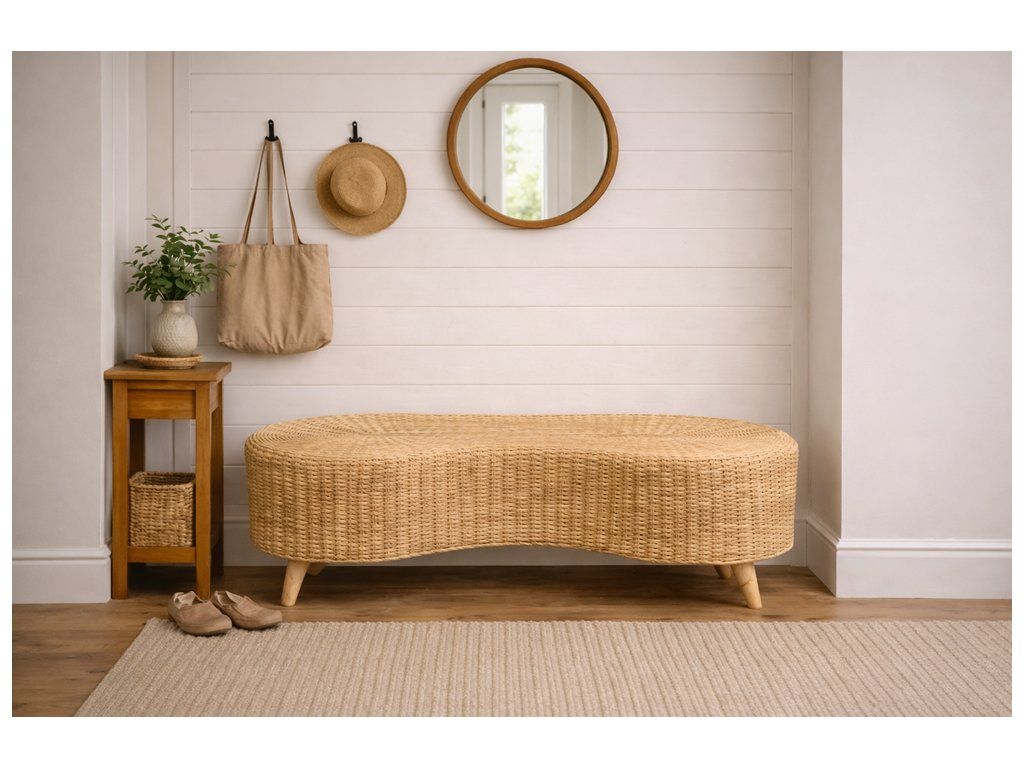 Elegantní lavice z ručně pleteného přírodního vodního hyacintu vnese do interiéru i krytého exteriéru hřejivou, útulnou atmosféru. Organický tvar, jemná struktura výpletu a přírodní odstín krásně ladí s boho, skandinávským i přírodním stylem bydlení. Lavice je nejen praktickým místem k sezení, ale i výrazným dekorativním prvkem, který prostoru dodá klid a harmonii.