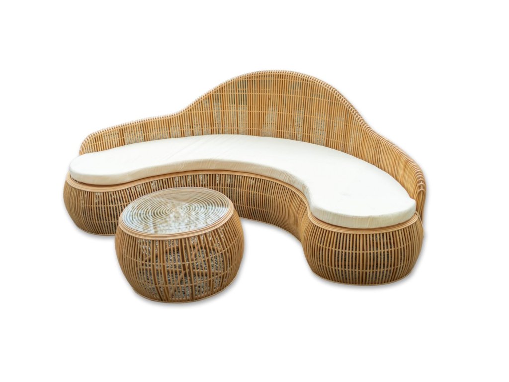 Přírodní ratanová sedačka se stolečkem