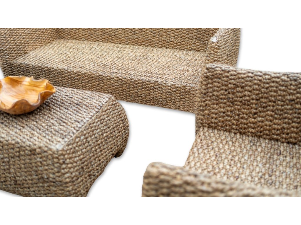 Přírodní hyacint je ekologický materiál, který přináší do vašeho domova teplý, přírodní vzhled a zároveň je velmi příjemný na dotek. Díky své pevné struktuře je nábytek stabilní a dlouhodobě odolný vůči běžnému opotřebení. Design soupravy je moderní a zároveň nadčasový, s jemně zaoblenými liniemi a ergonomickým tvarem, které zajišťují maximální komfort při posezení.