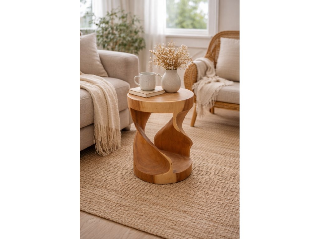Stylový a jedinečný stolek z teakového dřeva, který vyniká svým originálním designem a přírodní krásou dřeva. Tento ručně opracovaný kousek je ideální jako doplněk do obývacího pokoje, ložnice či pracovny. Díky pevnosti a odolnosti teaku je stolek nejen estetickým, ale i funkčním prvkem vašeho interiéru.