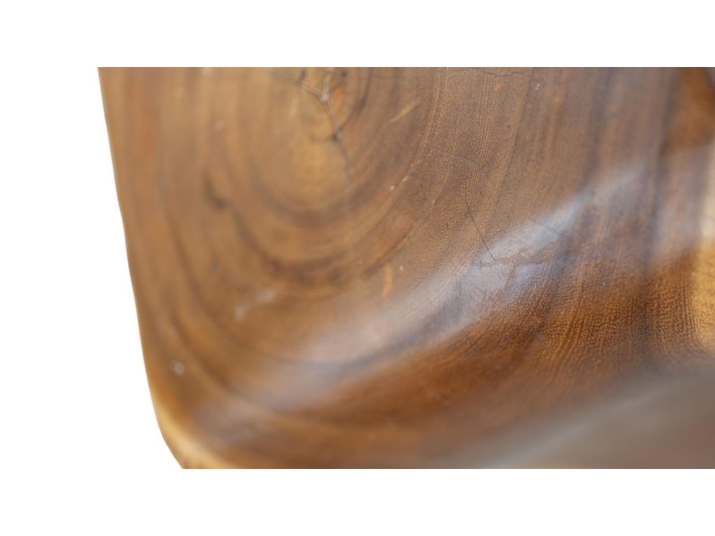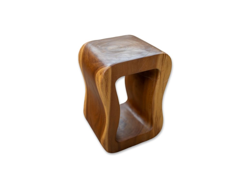 Masivní stolek či dekorativní taburet z jednoho kusu teakového dřeva, který zaujme svým organickým tvarem a hladce zaoblenými hranami. Každý kus je unikátní, díky přirozené kresbě dřeva a preciznímu ručnímu opracování. Tento multifunkční kousek je ideální jako doplněk do moderního i přírodního interiéru, který dodá prostoru teplý a přírodní charakter.