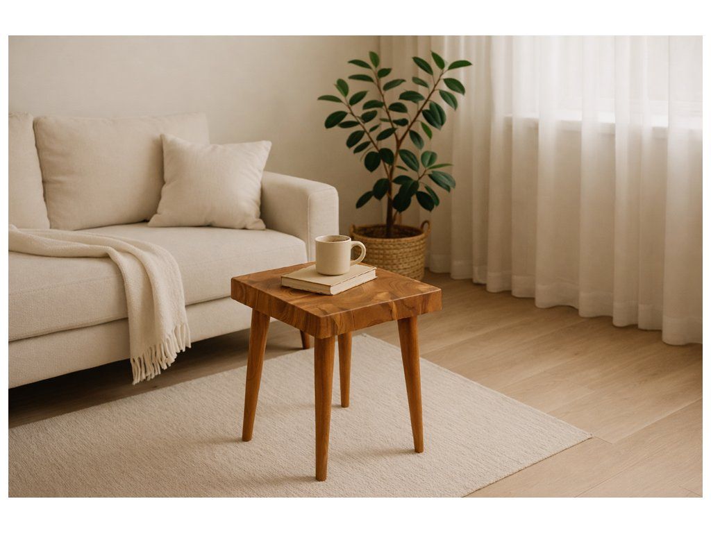 Odkládací stolek z masivního teakového dřeva – originální přírodní solitér