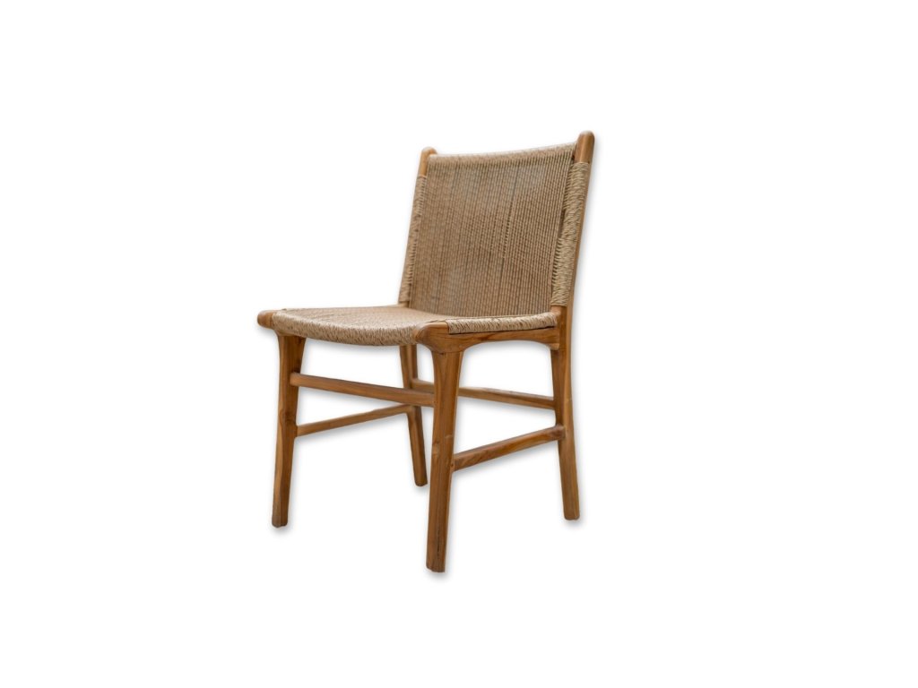 Sedák a opěradlo jsou ručně vyplétány pevným přírodním provazem, který zajišťuje pohodlí a zároveň dodává židli originální texturu a vzhled. Kombinace teakového dřeva a přírodního provazu vytváří nadčasový design, který zútulní každý prostor.